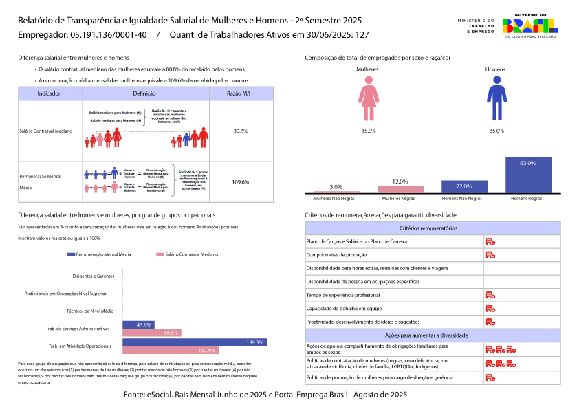 Entretanto, este tema não é tema novo para a CBE Bombas. Aqui a igualdade de gênero e a diversidade é pauta em todos os níveis da organização há tempos, pois a empresa entende a importância de contar com times diversos para a construção de um ambiente de trabalho inovador, produtivo e sustentável e a igualdade salarial é umas das peças fundamentais para isso.